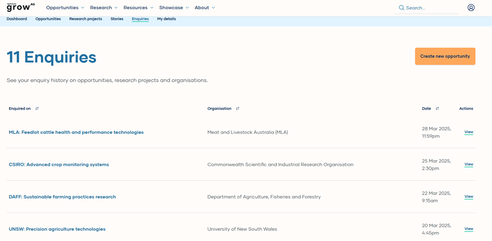 You will also be able to keep a record of any enquiries you’ve submitted to listings on the site: