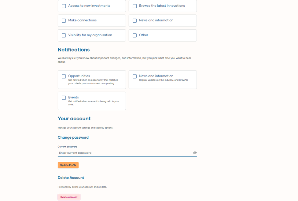 You can also manage your details at any time in the My details tab, including your preferences and account deletion: